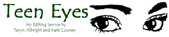Kids who write, kids who get published, they understand. So I’m dedicating this Terrific Teen Tuesday to a shameless plug for my teen friends over at TeenEyes Editorial. Kate and Taryn are a couple of young women who have both interned at major publishers and agencies and are well on the way to being published themselves. In the meantime they offer an excellent editorial service at very reasonable rates. Kate recently gave me some great notes on a middle grade novel that my agent sent out to five publishers just today!